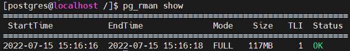pg_rman backup --backup-mode=full -B /pg_rman_backup -D /var/lib/pgsql/13/data --progress